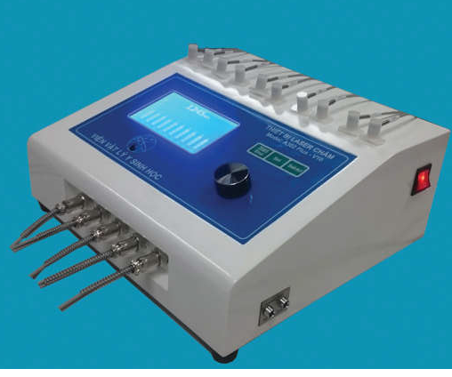 - Có 08 đầu laser kết nối với 08 kênh độc lập trên máy chính, điều chỉnh tần số trên mỗi kênh riêng biệt nên điều trị cùng lúc nhiều huyệt khác nhau.
