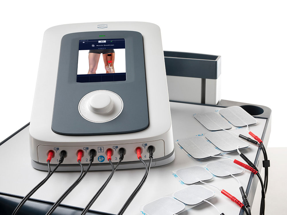 Thiết bị để điều trị đau, chẩn đoán và/hoặc kích thích cơ. Ứng dụng điện trị liệu để giảm đau nhanh mà không có tác dụng phụ. Có thể kích thích cơ để cải thiện chức năng của mô mềm. Điện trị liệu có thể được sử dụng để đo phản hồi của các mô khác nhau khi được kích thích.