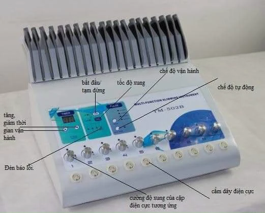 Cắm các dây điện cực vào máy – cố định các miếng điện cực vào vị trí cần thao tác trên cơ thể- bật công tắc nguồn ( sau máy) - chọn thời gian - chọn chế độ vận hành ( fl,f2,f3) – chọn tốc độ xung ( 1,2,3)- ấn nút start để mát bắt đầu làm việc.