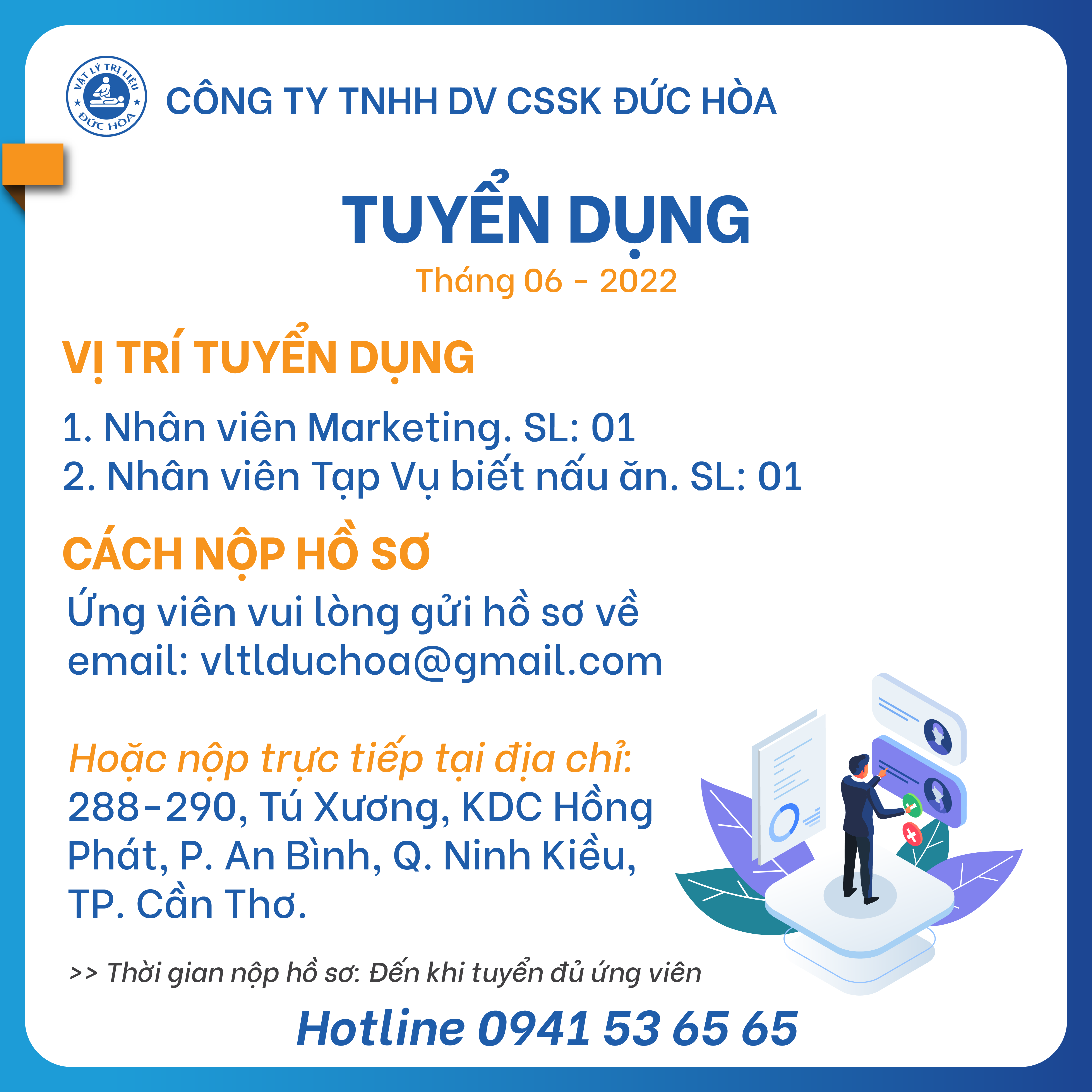 Công ty TNHH DV CSSK ĐỨC HÒA TUYỂN DỤNG THÁNG 06.2022